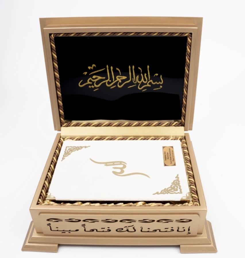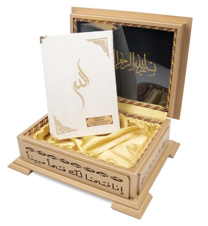 Ahşap Kutulu Kadife Kuran-ı Kerim (Hafız Boy, Divan Lafzatullah, Beyaz)